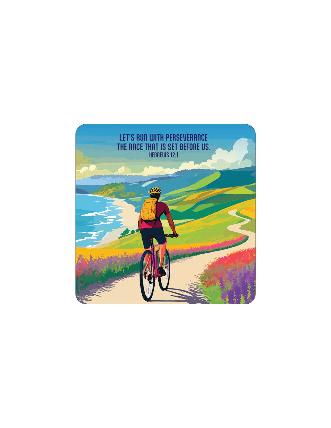Wording on coaster: Lets run with perseverance the race that is set before us- Hebrews 12:1