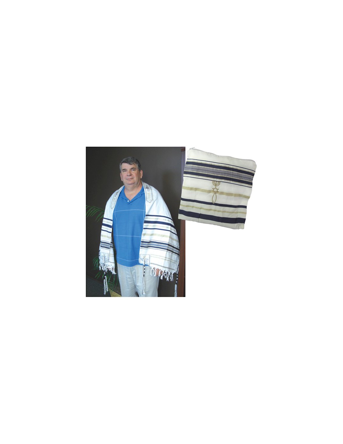 Prayer shawl with messianic symbols and hebrew text.