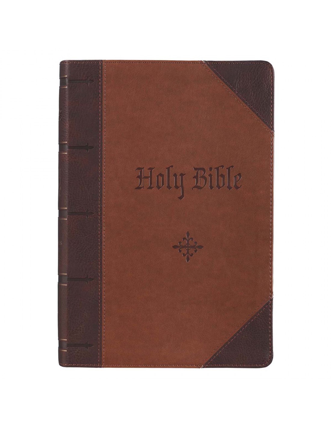 This attractive Two-tone Brown Quarter-bound Faux Leather Giant Print Full-size King James Version Bible with its almost antique design, can easily become a family heirloom and is the ideal gift to commemorate a special occasion like a birth or wedding.