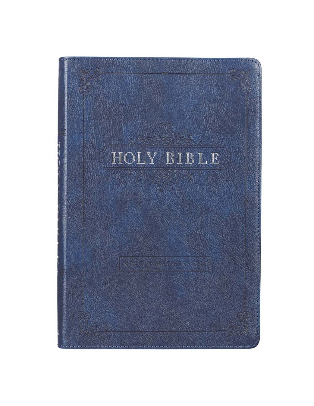 Write an encouraging note on the presentation page in the front of the KJV Bible and present it as a gift on a special occasion. The classic design and appealing color of the Blue Faux Leather Large Print Thinline King James Version Bible with Thumb Index makes this Bible a suitable gift for men or women.