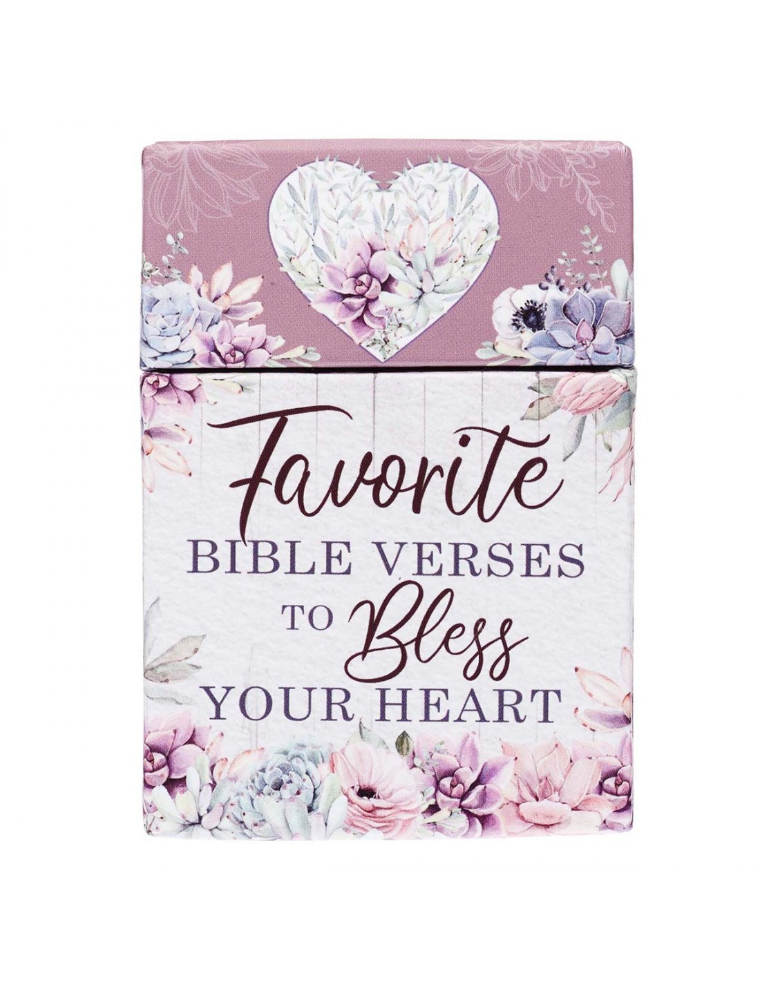 Inside the Box of Blessings are 51 double-sided cards decorated with the same succulent design. Encouraging Scripture verses are printed on the front and back of each card.