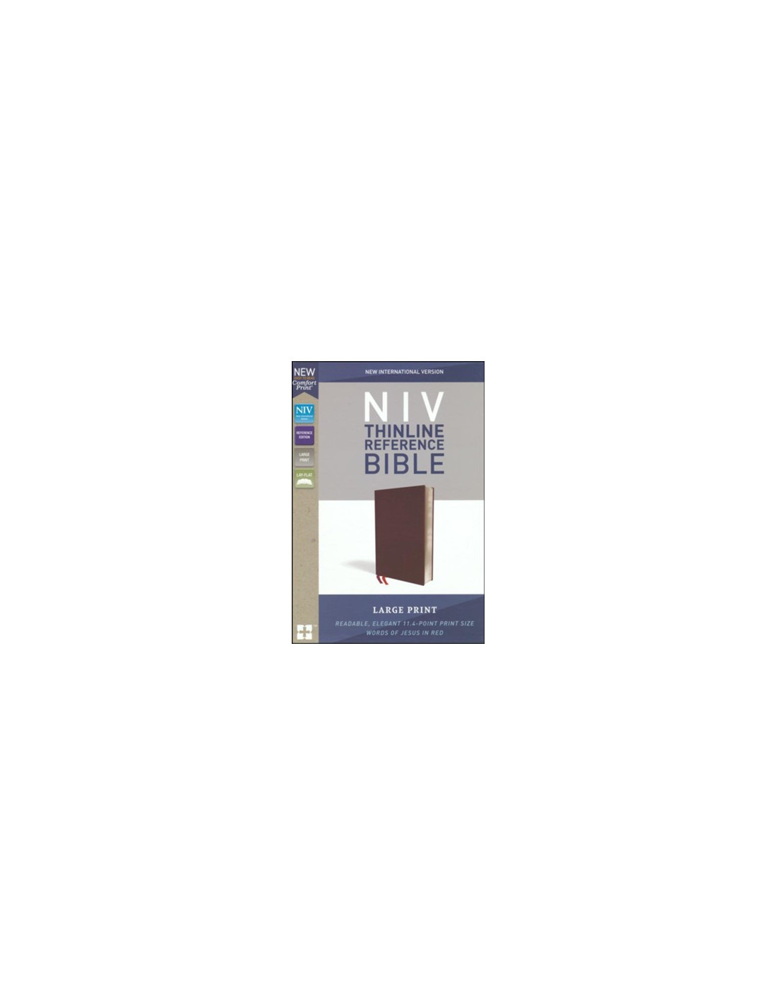 The NIV Comfort Print® Thinline Reference Bible, Large Print presents the depth and beauty of the Bible in a take-anywhere size. Containing helpful features such as a center-column reference system and measuring less than an inch thick, its the perfect size for work, travel, church, and Bible study for on-the-go access to God's Word. The new Zondervan NIV Comfort Print® typeface delivers a smooth reading experience that complements the most widely read contemporary-English Bible translation.