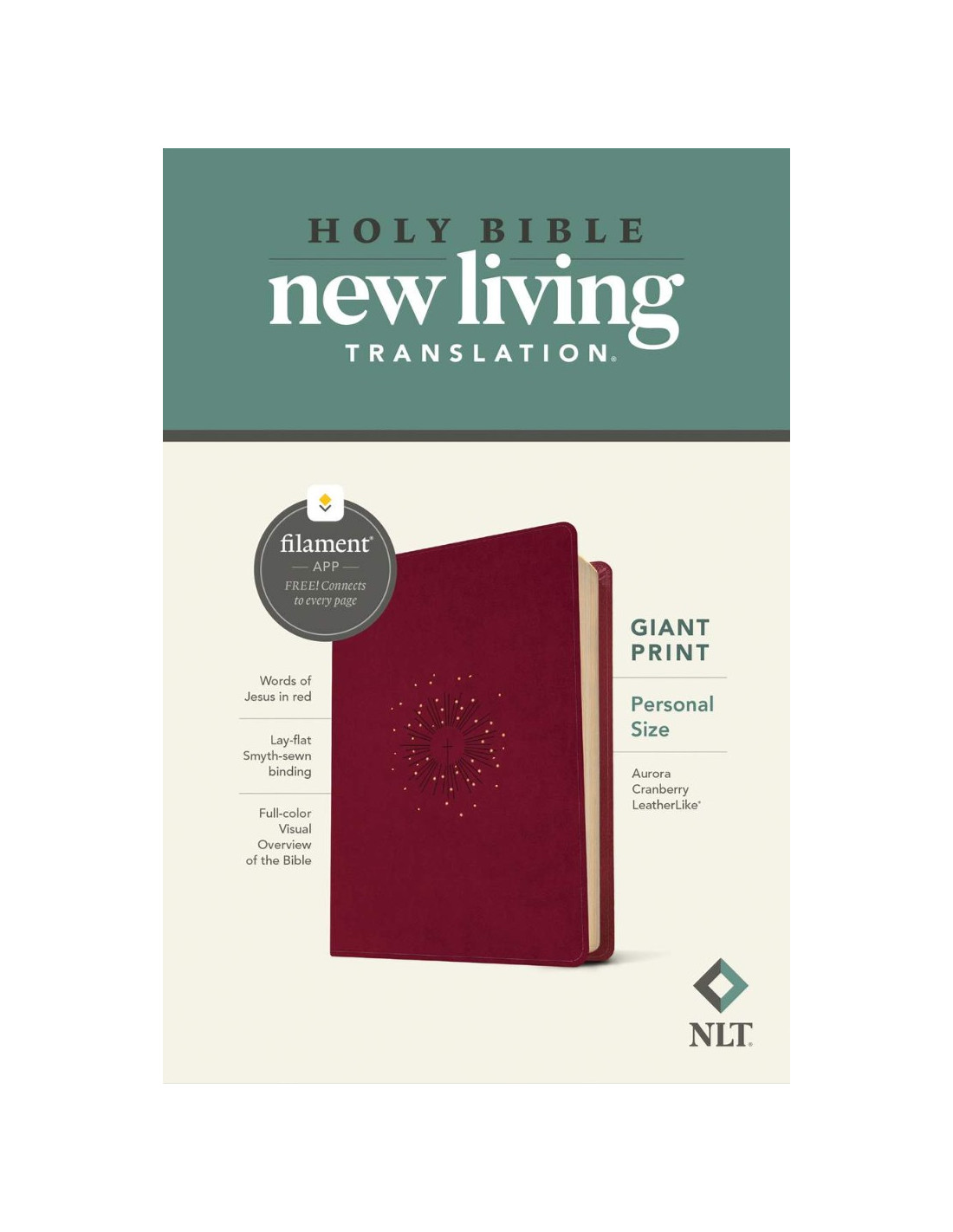 Bible Reading: Illuminated The new Tyndale NLT Personal Size Giant Print Bible, Filament-Enabled Edition has readable text and an attractive layout in an easy-to-carry size. And while it has the same low price as basic text-only Bibles, the NLT Personal Size Giant Print Bible offers much more. It not only features a bold new design and the trusted and much-loved New Living Translation (NLT) but also includes the groundbreaking Filament Bible app. This app enables you to use your mobile phone or tablet to connect every page to a vast array of related content, including study notes, devotionals, interactive maps, informative videos, and worship music. The Filament Bible app turns this Bible into a powerful study and devotional experience, offering more to expand your mind and touch your heart than you can possibly hold in your hand. And there is no additional cost for the Filament Bible app. No additional purchase; no additional size or weight. Of course, you can use this Bible without the app, but when you want to dig deeper, grab your phone or tablet and open the Filament Bible app. Its so easy to use. Features: New, easy-to-read page designs Filament content linked to every page! Readable large print Handy, thin size Words of Jesus in red Quality lay-flat Smyth-sewn binding Tyndale Verse Finder A Visual Overview of the Bible Presentation page Ribbon marker Gilded page edges Filament Bible app with free access to: 25,000 study notes 350+ videos 40+ maps and infographics 400+ profiles and articles 1,500+ devotionals Library of worship music