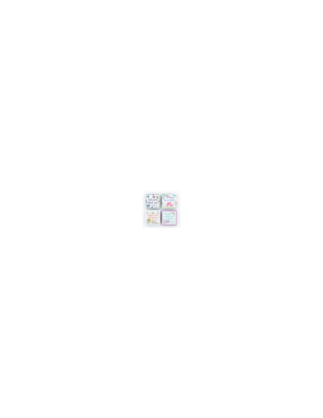 Our Inspirational Refrigerator Magnets are cheery, colorful and so functional. We all use the fridge as a household bulletin board for lists, messages, artwork, and photos. These unique sets of 4 magnets will instill a spiritual lift each time. The glossy, epoxy-filled magnets are about 5 cm square. The Everyday Blessings Collection features the artwork of Sally Sharp, with her simple, colorful drawings that illustrate things we love best about our daily lives. Scripture and sentiment displayed on these fun magnets include: "God cares about you. - 1 Peter 5:7", "God is faithful.", "Rejoice in the Lord always. - Philippians 4:4", "Be still and know that I am God. - Psalm 46:10". - Set of 4 Magnets - Glossy Epoxy-Filled - Individual Magnet Size: approxx 5 x 5 cm