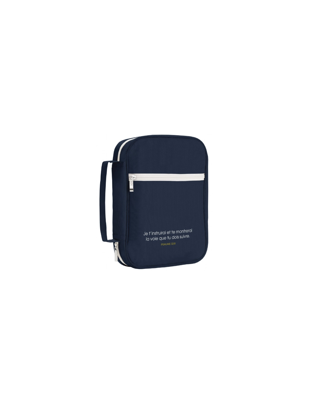 Protégez et transportez votre Bible avec élégance grâce à cette belle housse bleue avec le verset biblique Je t'instruirai et te montrerai et te montrerai la voie que tu dois suivre. (Psaume 32,8).