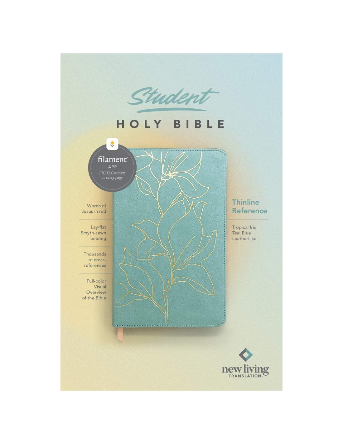 Reignite Bible reading in your teen or student. Ready for a Bible that fits your on-the-go lifestyle? The NLT Student Thinline Reference Bible, Filament-Enabled Edition is your ultimate companion for life's adventures. Packed with readable text, a sleek layout, and cross-references all in a slim, easy-to-carry size perfect for school, church, youth group, or wherever you roam. But hold on, there's more! Brace yourself for a bold new design and the trusted, easy-to-read New Living Translation (NLT) the language you speak. Key features of this youth Bible include: Words of Jesus in red, making His teachings stand out. Thousands of cross-references for deeper understanding. Quality lay-flat, Smyth-sewn binding for durability. The Tyndale Verse Finder for easy navigation. A Visual Overview of the Bible bringing scripture to life. Comfortable 8.75-point font for smooth reading. A presentation page to make this Bible uniquely yours. Level Up Your Bible Study with the Epic Filament Bible AppIt's Free! Unlock a world of knowledge on every page with this appfrom uplifting devotionals and thrilling videos to interactive maps and inspiring worship music. Plus, jam out to an awesome library of worship music that'll fire up your spirit! With the Free Filament Bible App you'll be instantly connected to: 25,000+ study notes for deeper understanding. 350+ videos to bring scripture to life. 40+ maps and infographics for visual context. 400+ profiles and articles for enriching insights. 1,500+ devotionals for daily inspiration. Library of worship music to uplift your soul. Audio Bible to immerse yourself in Gods Word. The Filament Bible app transforms this beautiful Bible into a powerful study and devotional experience, offering more to expand your mind and touch your heart than you can possibly hold in your hand. And there is no additional cost for the Filament Bible app. No add